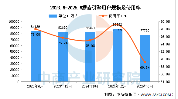中商情報(bào)網(wǎng)訊:截至2025年6月,我國搜索引擎用戶規(guī)模達(dá)7.77億人,占網(wǎng)民整體的69.2%。