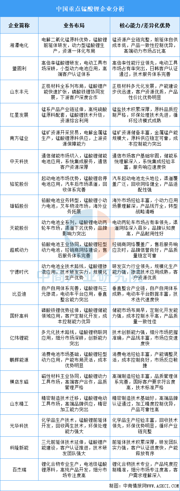 2025年中國錳酸鋰重點企業(yè)業(yè)務(wù)布局分析(圖)