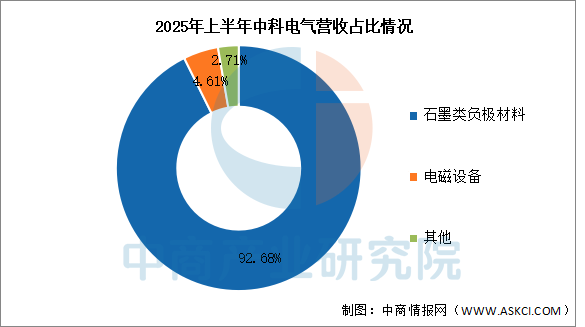 2025年上半年實現(xiàn)營業(yè)收入36.13億元,同比增長59.58%;實現(xiàn)歸母凈利潤2.72億元,同比增長294.2%。2025年上半年主營產(chǎn)品包括石墨類負(fù)極材料、電磁設(shè)備,營收分別占整體的92.68%、4.61%。