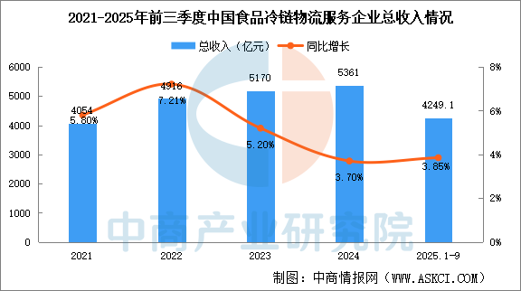 2025年前三季度中國食品冷鏈物流業(yè)務(wù)總需求量及企業(yè)總收入分析(圖)