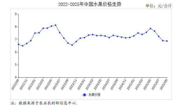 中商情報網(wǎng)訊:2025年9月,水果價格持平略跌。秋季水果市場供應(yīng)以晚熟蘋果、柑橘、梨等大宗果品為主,雙節(jié)后隨著餐飲、禮盒消費需求下降,水果消費熱情回落,水果市場將呈現(xiàn)秋果批量上市、需求回落格局,預(yù)計近期價格偏弱運行。