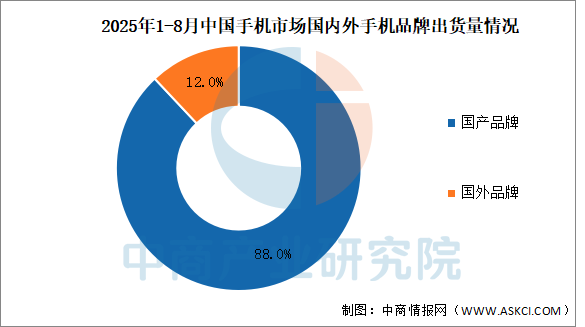 2025年1-8月,國(guó)產(chǎn)品牌手機(jī)出貨1.69億部,同比增長(zhǎng)0.6%,占同期手機(jī)出貨量的88.0%。