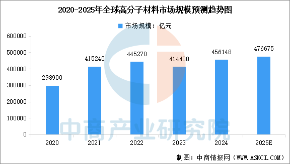 中商情報(bào)網(wǎng)訊:隨著全球經(jīng)濟(jì)復(fù)蘇,全球高分子材料市場(chǎng)有著較大幅度的增長。中商產(chǎn)業(yè)研究院發(fā)布的《2025-2030年中國高分子材料行業(yè)深度研究及發(fā)展前景投資預(yù)測(cè)分析報(bào)告》顯示,全球高分子材料市場(chǎng)規(guī)模從2020年的29.89萬億元迅速增長至2024年的45.61萬億元,期內(nèi)年均復(fù)合增長率達(dá)11.1%。中商產(chǎn)業(yè)研究院分析師預(yù)測(cè),2025年全球高分子材料市場(chǎng)規(guī)模將達(dá)到47.67億元。
