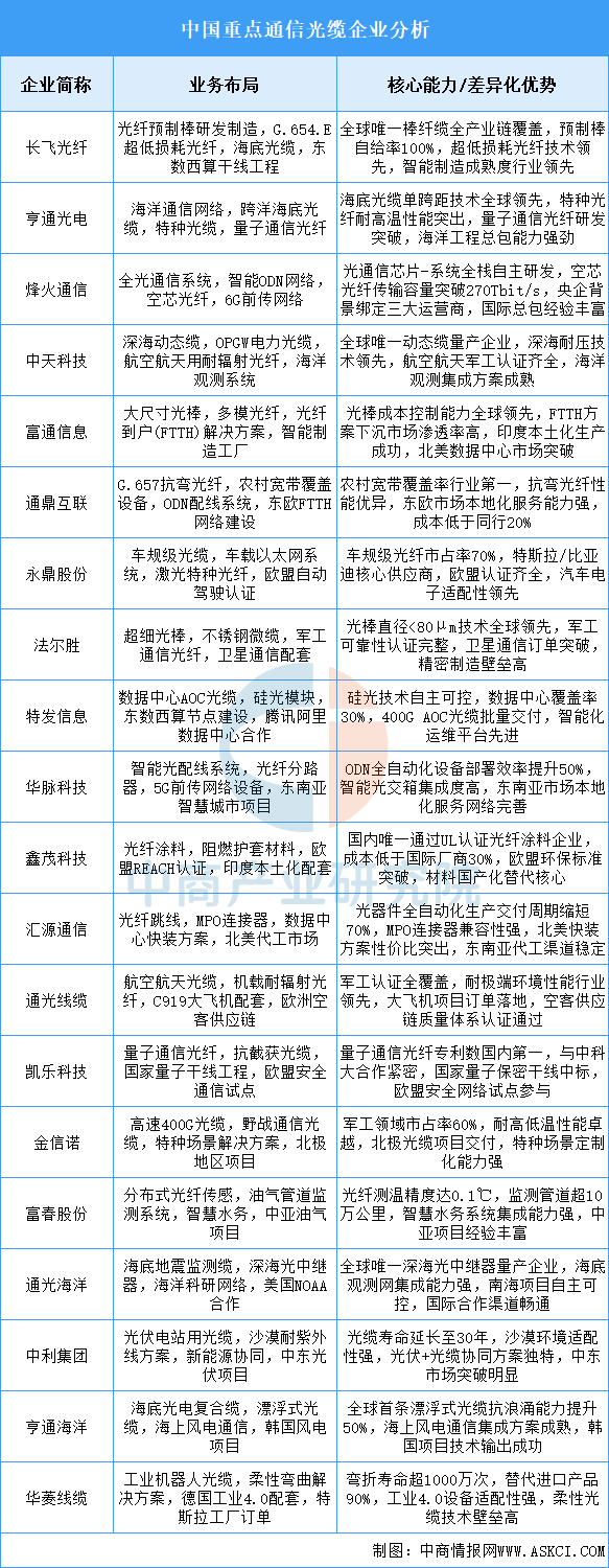 中商情報(bào)網(wǎng)訊:行業(yè)正經(jīng)歷從規(guī)模擴(kuò)張向高質(zhì)量發(fā)展轉(zhuǎn)型的關(guān)鍵階段,技術(shù)競爭聚焦超低損耗、特種光纖及智能制造成套解決方案,應(yīng)用領(lǐng)域從傳統(tǒng)通信網(wǎng)絡(luò)向東數(shù)西算、海洋通信、航空航天等高端場景加速拓展。長飛光纖以棒纖纜全產(chǎn)業(yè)鏈技術(shù)主導(dǎo)全球市場;亨通光電借海洋通信與特種光纜技術(shù)鞏固領(lǐng)先地位;烽火通信依托光通信全棧解決方案實(shí)現(xiàn)差異化布局。