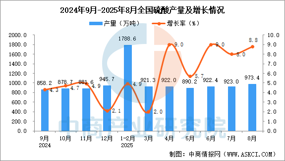 2025年8月全國硫酸產量數據統(tǒng)計分析