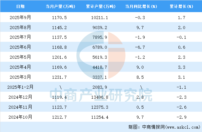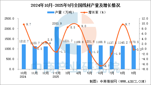 中商情報網(wǎng)訊:據(jù)中商產業(yè)研究院數(shù)據(jù)庫,2025年9月全國線材(盤條)當月產量與去年同期相比下降。2025年9月全國線材產量為1170.5萬噸,同比下降0.3%。2025年1-9月全國線材產量10211.1萬噸,同比增長1.7%。