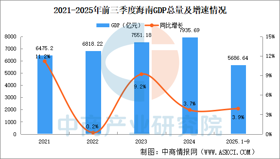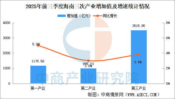 中商情報(bào)網(wǎng)訊:前三季度,海南省經(jīng)濟(jì)平穩(wěn)運(yùn)行、韌性增強(qiáng),產(chǎn)業(yè)結(jié)構(gòu)調(diào)整提質(zhì)增效。根據(jù)地區(qū)生產(chǎn)總值統(tǒng)一核算結(jié)果,前三季度,全省地區(qū)生產(chǎn)總值5686.64億元,按不變價(jià)格計(jì)算,同比增長(zhǎng)3.9%。分產(chǎn)業(yè)看,第一產(chǎn)業(yè)增加值1175.56億元,同比增長(zhǎng)5.0%;第二產(chǎn)業(yè)增加值995.23億元,增長(zhǎng)3.0%;第三產(chǎn)業(yè)增加值3515.85億元,增長(zhǎng)3.8%。
