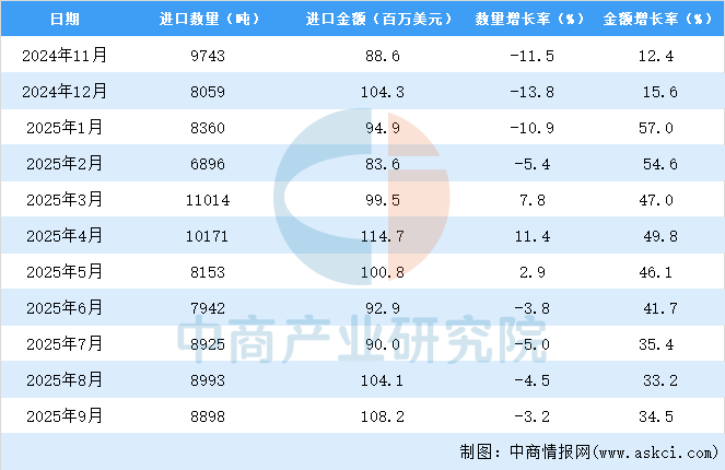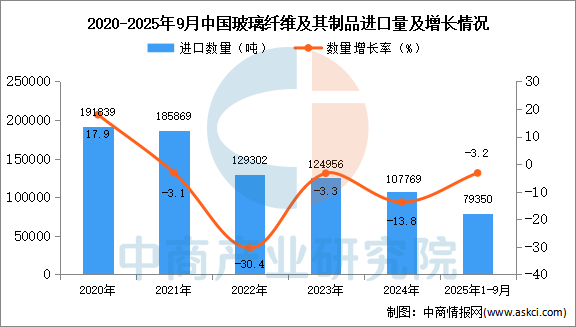 2025年9月中國玻璃纖維及其制品進(jìn)口量及金額增長情況