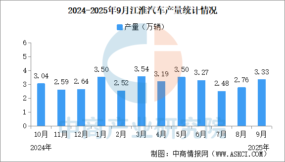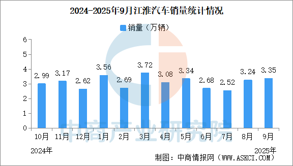 2025年9月江淮汽車產(chǎn)銷量情況:新能源乘用車銷量同比增長18.69%(圖)